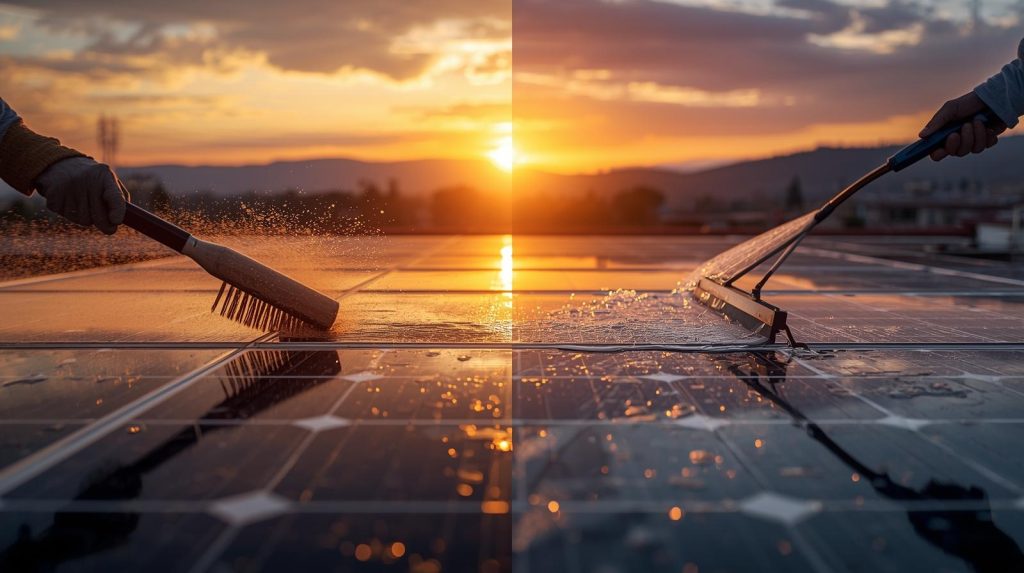 Furthermore, utilizing special cleaners formulated for solar panel surfaces can help protect against potential damage while still achieving thorough results in a shorter period of time than what could be achieved manually. Ultimately, when considering cost effectiveness between wet and dry cleaning methods, it is important to weigh the pros and cons of both before making a decision about which approach best suits your needs.